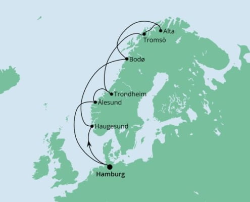 Erkunden Sie mit AIDA die unglaubliche Vielfalt des Nordens. Fahren Sie durch tiefblaue Fjorde, gesäumt von spektakulären Gipfeln, schwindelerregend hohen Klippen und dem satten Grün der skandinavischen Natur. Legen Sie inmitten faszinierender Landschaften an und entdecken Sie malerische Dörfer, in denen die Zeit stehen geblieben zu sein scheint. Wenn der Schnee die Natur fest im Griff hat erleben Sie mit viel Glück den mystischen Zauber der Polarlichter.