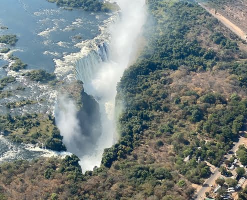 | Tag 13 | Kasane – Victoria Falls, Ausflug: Helikopterrundflug (zusätzlich buchbar) Grenzübergang bei Kazangula nach Simbabwe und Fahrt nach Victoria Falls. Der Nachmittag steht für optionale Aktivitäten zur Verfügung. 1 Nacht in der Bayete Guest Lodge oder PheZulu Guest Lodge (Landeskat. 4 Sterne). Ca. 150 Km (F). (Fahrt im Expeditions-Truck) |