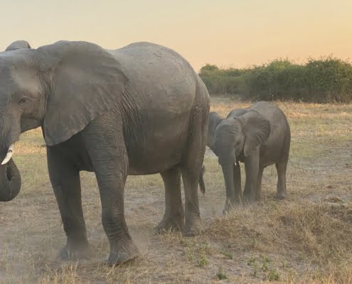 | Tag 3 | Victoria Falls – Nata/Botswana, Pirschwanderung Ihre erste Etappe führt durch die Steppenlandschaft Botswanas zur Elephant Sands Adventure Lodge, die mitten in einem privaten Wildreservat liegt – ein Paradies für Elefanten! Die Stille inmitten dieser faszinierenden Landschaft ist überwältigend. Am Nachmittag unternehmen wir eine Pirschwanderung – Ihr Guide führt Sie ein ins Spurenlesen. Da die Pfanne das ganze Jahr über Wasser führt, bietet sie Lebensraum für eine Vielzahl von Tieren. Den Abend verbringen Sie am Lagerfeuer und lauschen den Geräuschen der Nacht – hier kommen „Out of Africa“-Gefühle auf! 1 Nacht in der Elephant Sands Adventure Camp (Landeskat. 3-Sterne). Ca. 280 Km. (F, A) (Expeditions-Truck für die Strecke Lodge-Lodge und offenes 4×4-Fahrzeug von Main Lodge zum Adventure camp) |