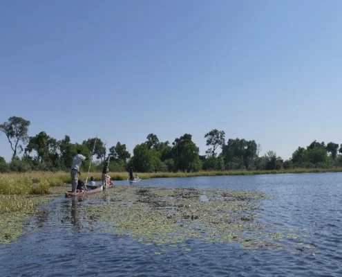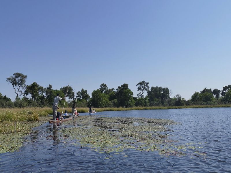 | Tag 7 | Maun – West Delta, Bootsfahrt auf dem Okavango Fluss Ihr heutiges Ziel ist das West-Delta, der „Panhandle“ des Okavango Deltas. Am Seeufer des mächtigen Okavango Flusses liegt unser geschmackvoll eingerichtetes Camp. Am Nachmittag starten Sie zu einem Bootsausflug durch das dichte Grün aus Papyrus, Farn und Schilf. Sie sehen zahlreiche Wasservögel, die in allen Farben schillern. Geradezu artistisch tauchen die kleinen Kingfischer oder auch der farbenprächtige Malachiteisvogel neben Ihnen ins Wasser und der Schreiseeadler zieht seine Kreise. Am Abend lassen Sie den Tag am offenen Lagerfeuer ausklingen. 2 Nächte in der Shakawe River Lodge oder Kigelia Adventure Camp (Landeskat. 3 und 4 Sterne). Ca. 380 km (F, A) (Fahrt im Expeditions-Truck) |