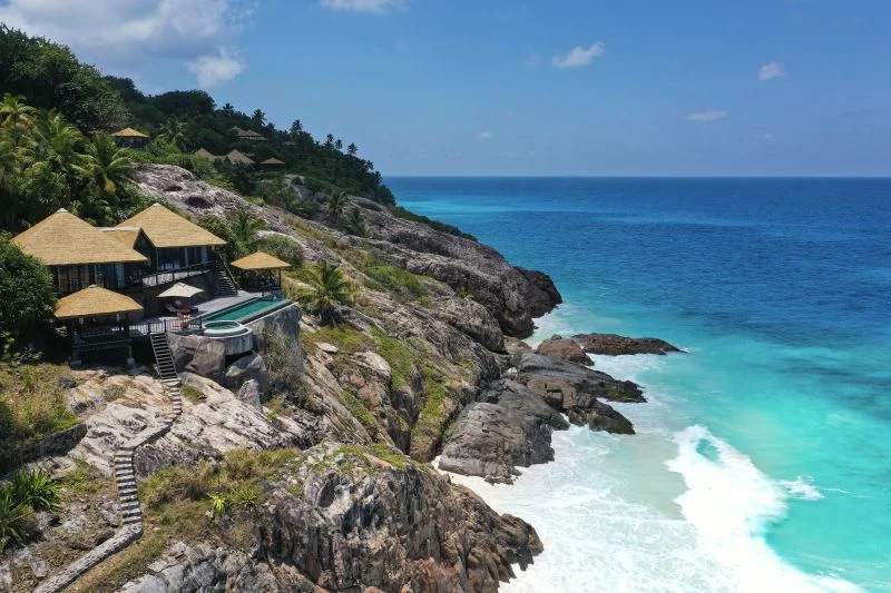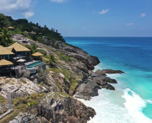 Private Pool Villen und Banyan Hill Estate mit maximaler Privatsphäre fügen sich harmonisch in die Umgebung ein und bieten einen traumhaften Blick über den Indischen Ozean. Die Villen in landestypischem Stil verfügen über sep. Wohn-/Schlafzimmer, Essbereich, Badezimmer mit Außen-Regendusche, Föhn, Bademantel, Satelliten-TV, CD-/DVD-Player, Telefon, WLAN, Klimaanlage, Ventilator, Minibar, Kaffee-/Teezubereiter, Safe, Sonnenterrasse mit großem Infinity-Pool (ca. 10-15 x 3 m), Jacuzzi und Tagesbett. Mit privatem Butler und Elektro-Buggy.