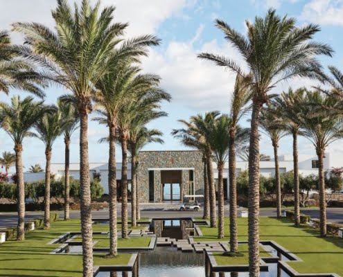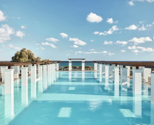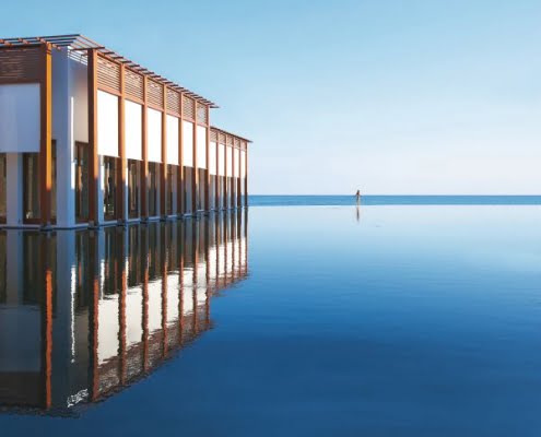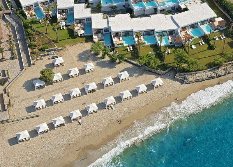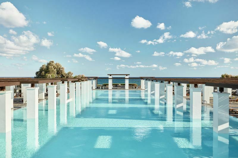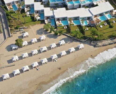 Moderne Architektur mit minoischen und venezianischen Akzenten: Der kretische Wasserpalast – das Grecotel Amirandes – bietet einen olympischen Pool und palmenumsäumte Lagunen an drei Stränden. Villengästen steht der separate Strandbereich mit privaten Pavillons und persönlichem Service zur Verfügung.