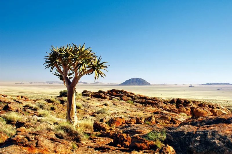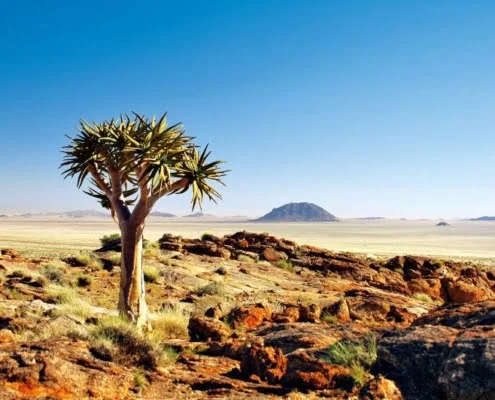 | Tag 5 | Kalahari Wüste – Fischfluss Canyon Ihre Reise führt Sie heute in die Region des Fischfluss Canyon. Auf dem Weg in diese Region Besuchen Sie noch einen Köcherbaumwald. Ankunft in der Lodge am Nachmittag. 2 Nachte in der Canyon Lodge (Landeskat. 3-Sterne). Ca. 417 Kilometer (F, M, A) |
