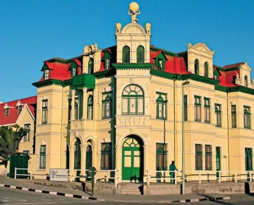 | Tag 11 | Namib Wüste – Swakopmund Die Reise führt weiter über den durch den Ghaub Pass und Kuiseb Canyon, wo besonders die Fotografen auf ihre Kosten kommen. Das Stadtbild des rund 30.000 Einwohner zählenden Ortes wird durch zahlreiche Kolonialbauten geprägt. Ein Wahrzeichen der Stadt ist das Woermann Haus aus dem Jahre 1905. Das ehemalige Handelshaus in der Bismarck Straße mit seinem 25 Meter hohen Damara-Turm und seinem von Arkaden gesäumten Innenhof beherbergt heute die städtische Bibliothek und eine Kunstgalerie. Der Nachmittag steht zur freien Verfügung. 2 Nächte im The Delight Swakopmund (Landeskat.3,5-Sterne). Ca. 300 Km (F, M, A) |