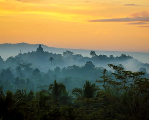 | Tag 7 | BOROBODUR TEMPEL Sie besuchen den Tempel von Borobudur. Seit 1991 ist die größte buddhistische Tempelanlage der Welt UNESCO-Weltkulturerbe. Über gesamt neun Stufen erstreckt sich das kunstfertige Bauwerk pyramidal in die Höhe und verkörpert damit das Ideal buddhistischen Lebens bis hin zur Erleuchtung. Eine Fahrradtour führt Sie entlang von Reisfeldern und durch kleine Dörfer. Anschließend nehmen die Bewohner des Dörfchens Candirejo Sie auf einer Kutschfahrt mit auf eine Tour durch die Siedlung. Der Nachmittag steht zur freien Verfügung. Übernachtung wie am Vortag. (F) |
