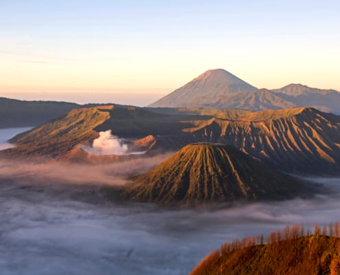 | Tag 10 | YOGYAKARTA – MOUNT BROMO Früh geht die Reise auf Java weiter: um 7 Uhr Abfahrt mit dem Zug nach Mojokerto und von dort Überlandtransfer zum Mount Bromo (2329 m), einem aktiven Vulkan inmitten des Bromo-Tengger-Semeru-Nationalparks. Übernachtung im Hotel. (Fahrzeit Zug ca. 4h, Auto ca. 4h). (F) |