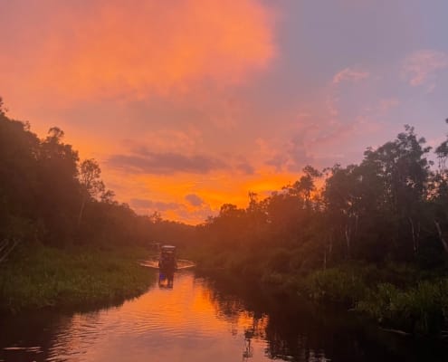 | Tag 5 | TANJUNG PUTING NATIONALPARK – PANGKALAN BUN Sie wandern zu einem nahegelegenen Dorf. Dort erhalten Sie einen authentischen Einblick in das Leben am Nationalpark. Bei der Weiterfahrt mit dem Boot entdecken Sie mit großer Wahrscheinlichkeit Nasenaffen, Makaken und Eisvögel in den die Flussufer säumenden Baumwipfeln. Nach dem Mittagessen Rückkehr nach Kumai und Fahrt nach Pangkalan Bun. Übernachtung im Hotel. (F/ M) |