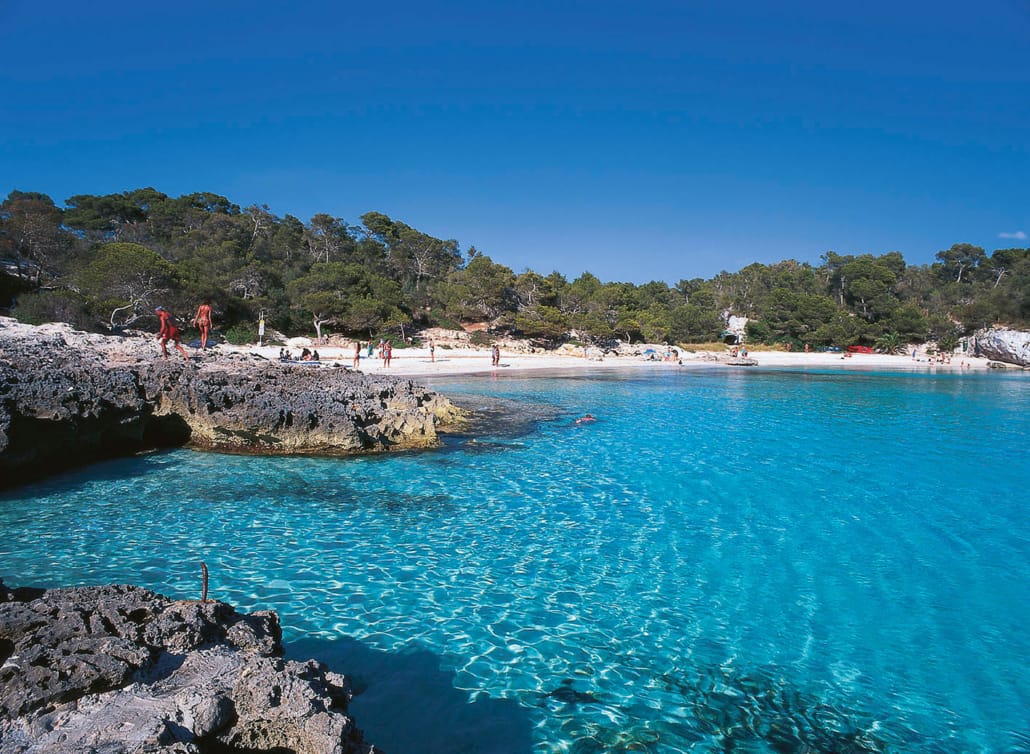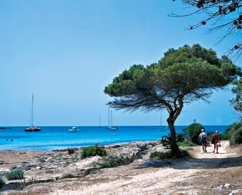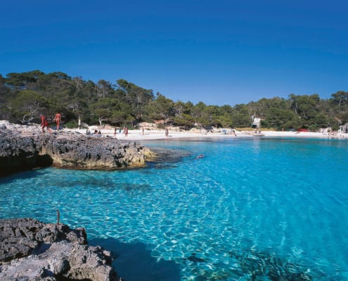 Besuch der Ausgrabungsstätte Torrellafuda mit Talaiot, Mauerresten und Taula-Bereich. Weiter zur Bucht Cala Galdana. Stopp in Es Migjorn Gran, dem kleinsten Ort Menorcas mit blauer Kuppelkirche. Anschließend leichte Wanderung (ca. 5 km, 2 Std.) durch die Schlucht von Binigaus bis zum Strand von Sant Tomás.