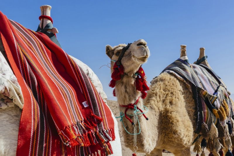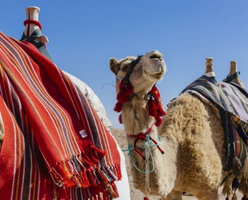 Am frühen Morgen setzt sich im Resort eine Karawane in Bewegung, manchmal auch abends vor der Dämmerung. Kamele aus den eigenen Stallungen. Zurück bleibt der kleine Nachwuchs in der Aufzuchtstation. Was wäre solch ein Ausflug in die Wüste ohne direkt dort zu übernachten? Im Zelt! Beduinen führen durch ihre Heimat und erzählen Geschichten von gestern und heute.